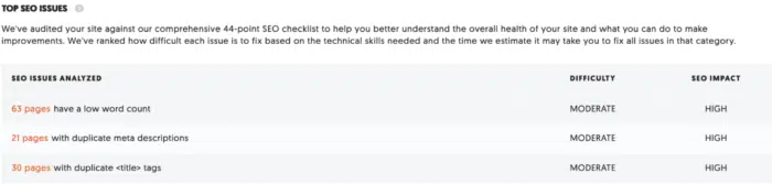 Étape #5 : Identifiez les problèmes majeurs de référencement.