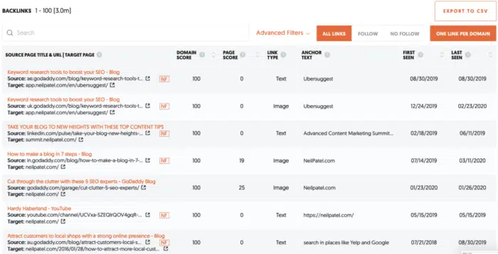 Par exemple, constater que GoDaddy a mentionné votre site à plusieurs reprises peut vous inciter à cibler d’autres acteurs du secteur de l’hébergement ou du webmarketing. C’est bien plus efficace qu’une prospection au hasard.