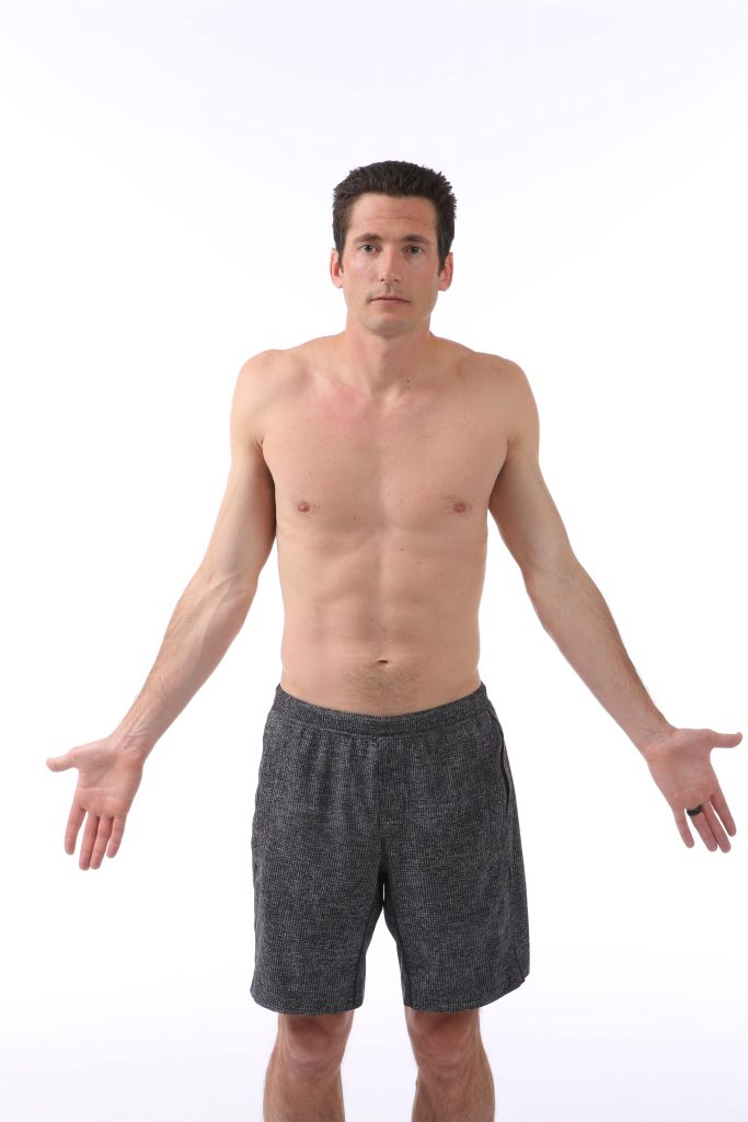 - Pour les épaules : haussez-les, tournez les paumes vers l’avant, puis abaissez-les tranquillement.